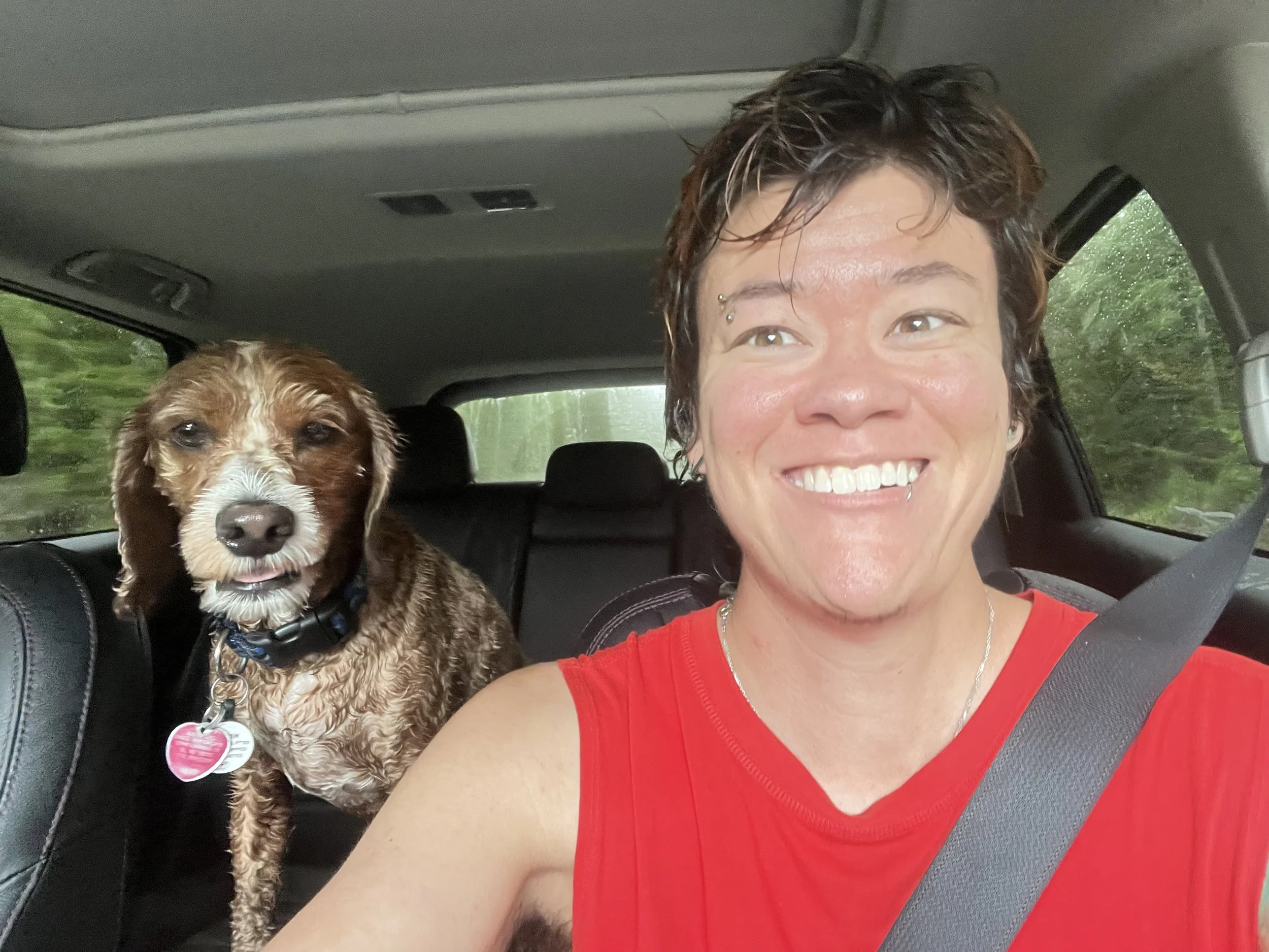 After a wild adventure in the 100 Mile Wilderness— wet, tired, and happy. Pippin and I walked every step together. He was always leading the charge, tail wagging and nose to the wind.