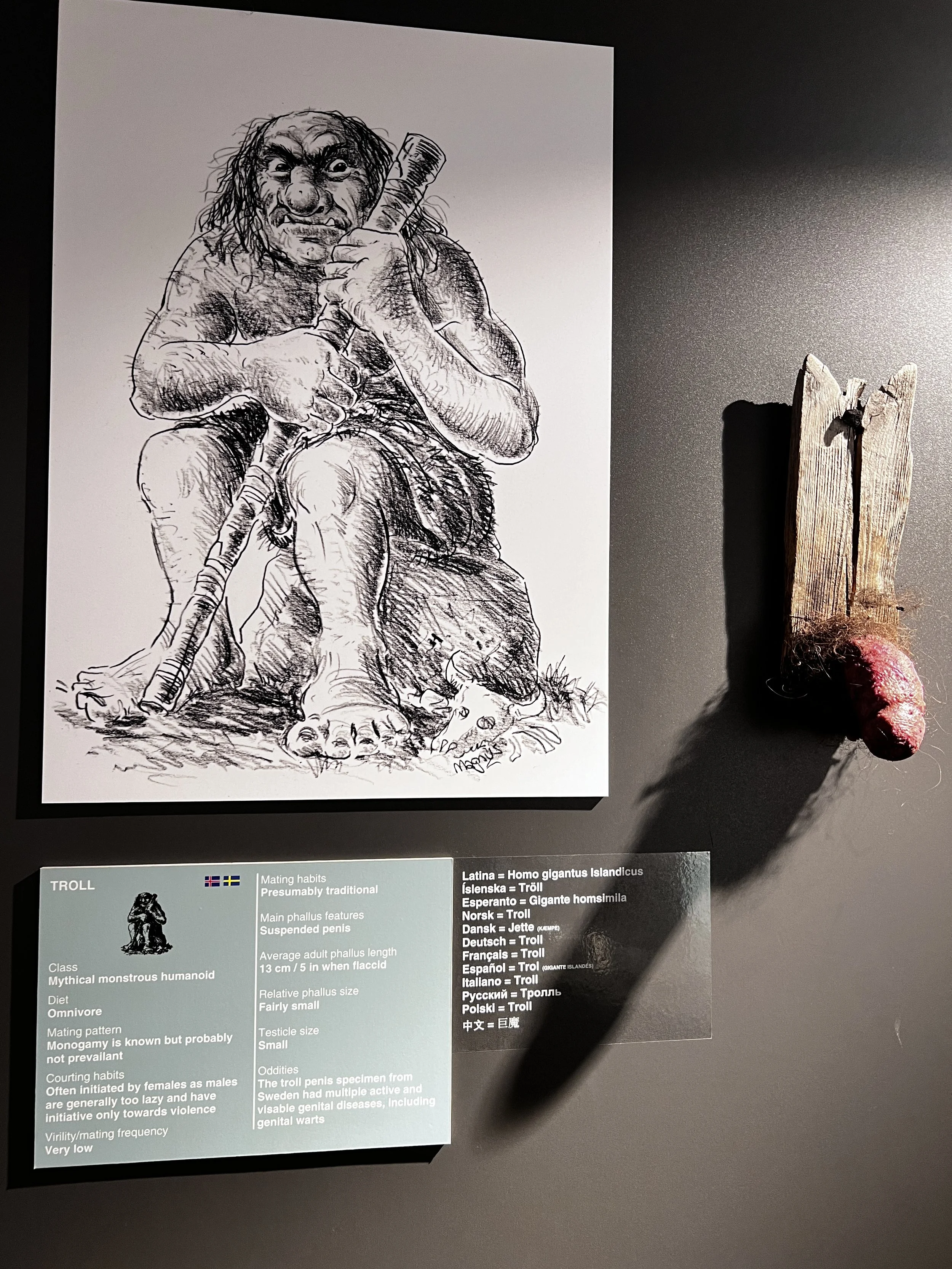 Troll: Phallus size: Fairly Small. Testicle size: Small (Icelandic Phallological Museum, Reykavik, 2024)
